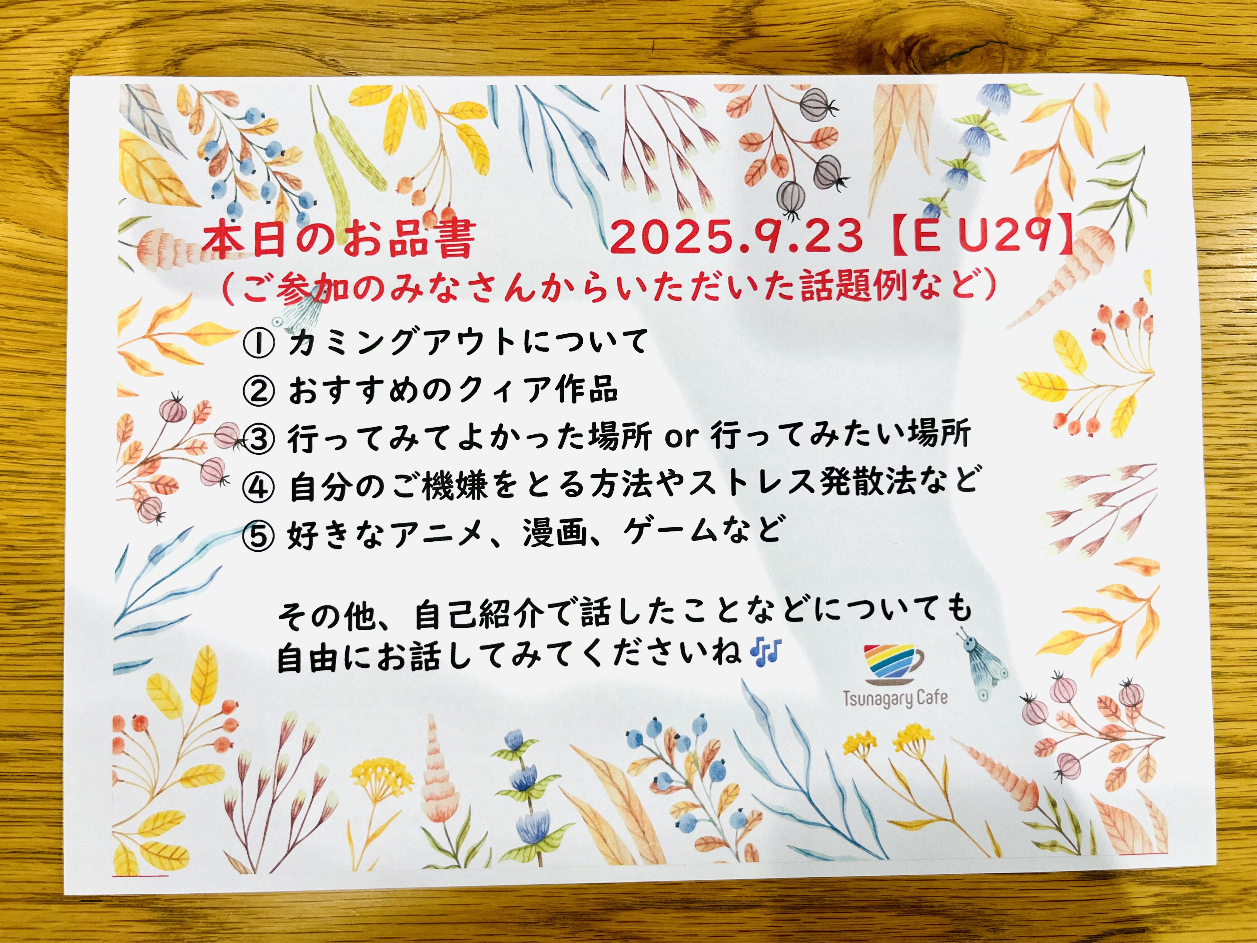 9/23(火祝)Tsunagary Cafe for everyone U29(大阪)