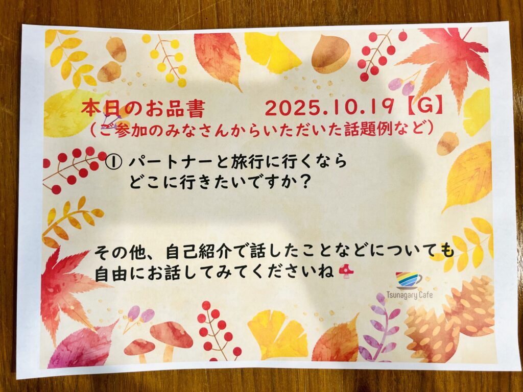 【G】10/19(日)Tsunagary Cafe for G(大阪)は、