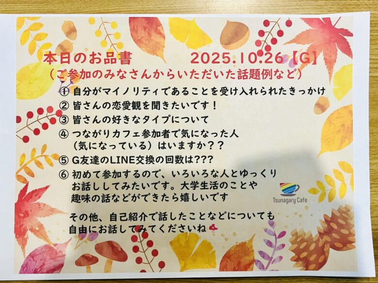 【G】10/26(日)Tsunagary Cafe for G(京都)は、