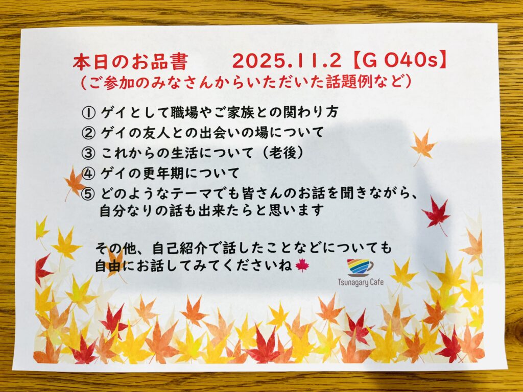 🍁開催レポート|【G O40s】11/2(日)Tsunagary Cafe for G O40s(大阪)