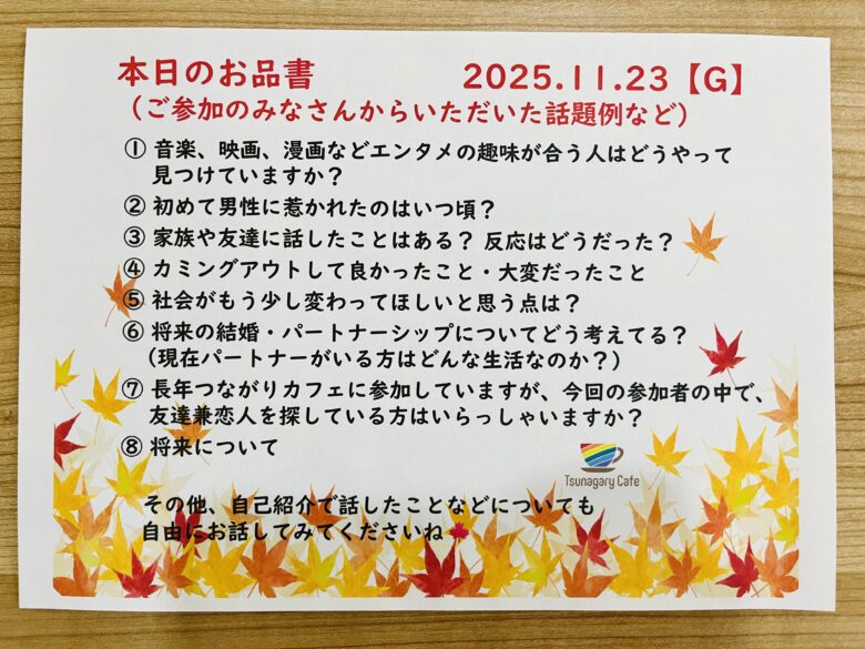 開催レポート|【G】11/23(日)Tsunagary Cafe for G(大阪)