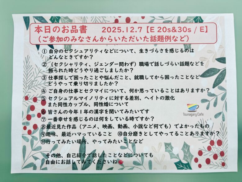 開催レポート|【20-30代向け】12/7(日)Tsunagary Cafe for everyone 20s & 30s in ダイバーシティキャリア大阪