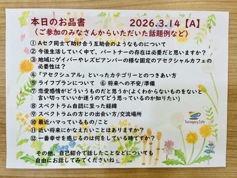 開催レポート|【A】3/14(土)Tsunagary Cafe for A(大阪)