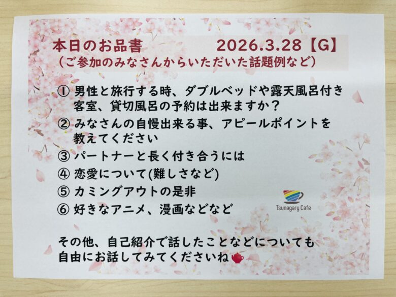 開催レポート|【G】3/28(土)Tsunagary Cafe for G(京都)